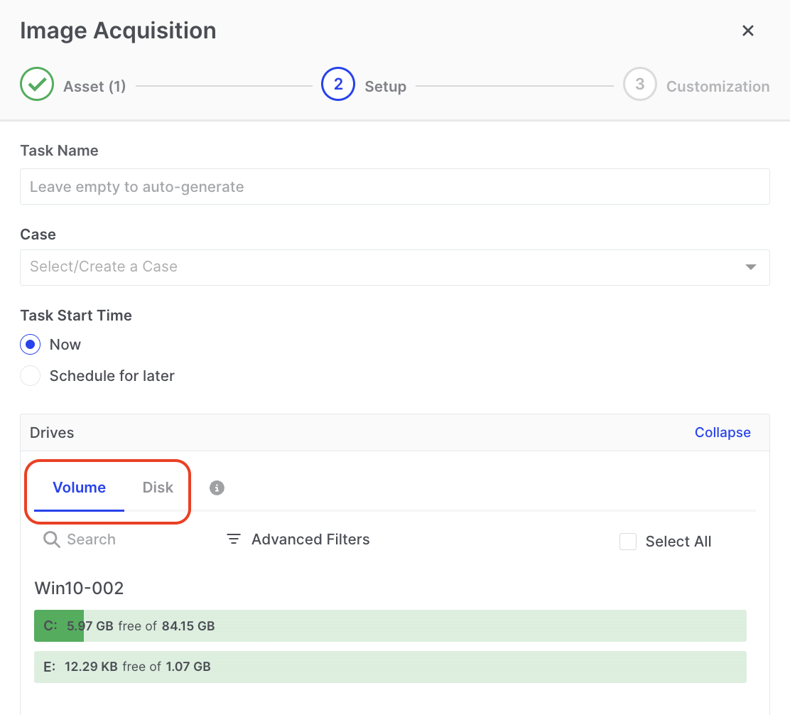 Disk and Volume Imaging: Acquire an image from a single asset