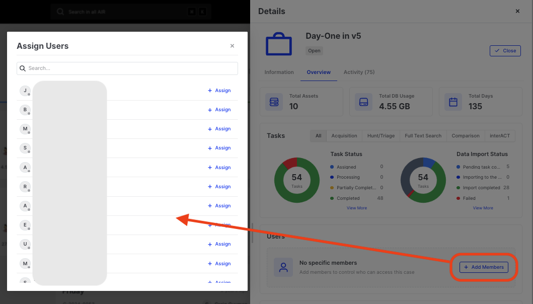 4. Click ”+ Add Members” (or the assigned user count) to open the Assign Users modal.