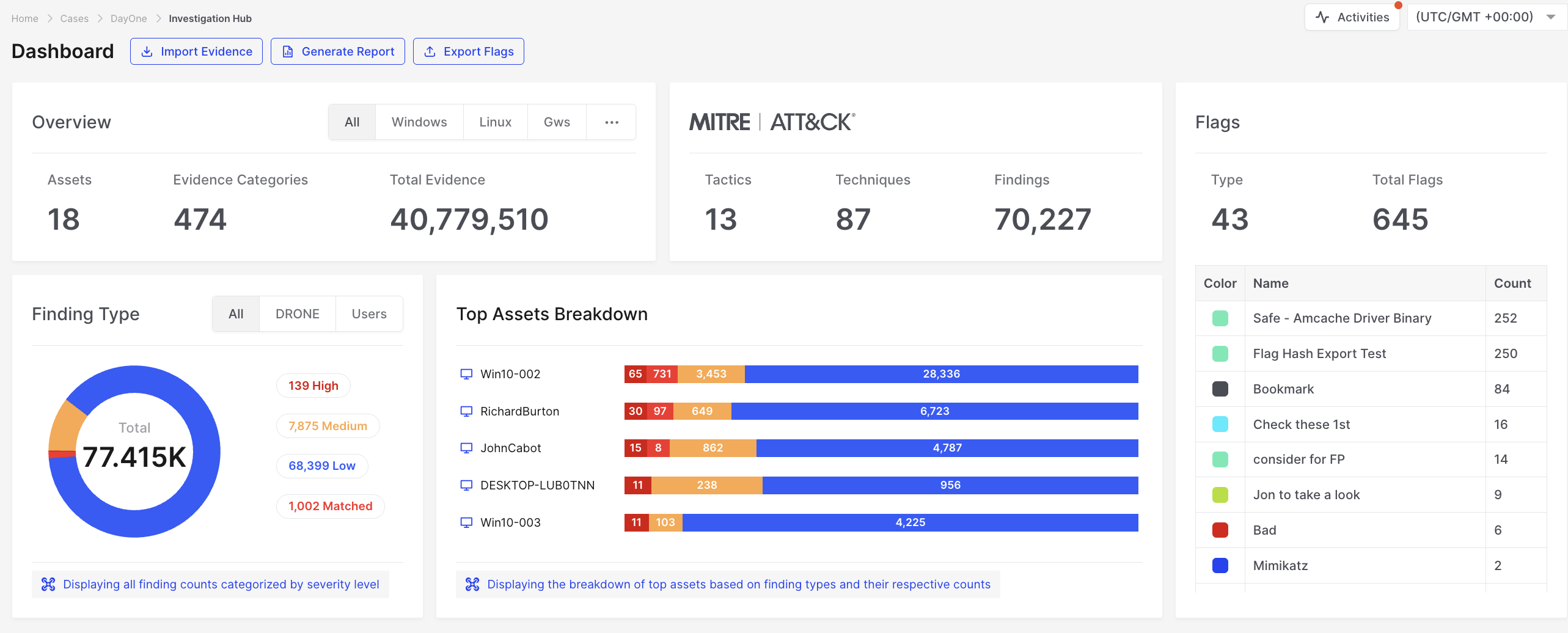 AIR automates the rapid generation and presentation of a clear DFIR intelligence report directly within the Investigation Hub. This report instantly highlights DRONE’s findings and consolidates all Acquisition and Hunt/Triage data from multiple assets into a single view known as the Investigation Hub.