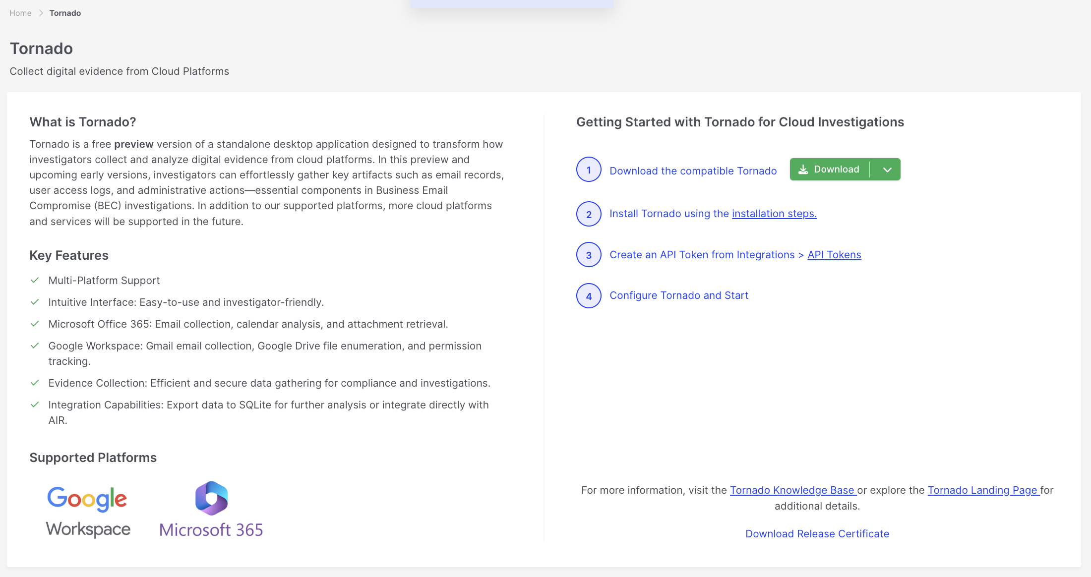 • Existing customers can download it via the Tornado Preview button in the Main Menu of the AIR console.