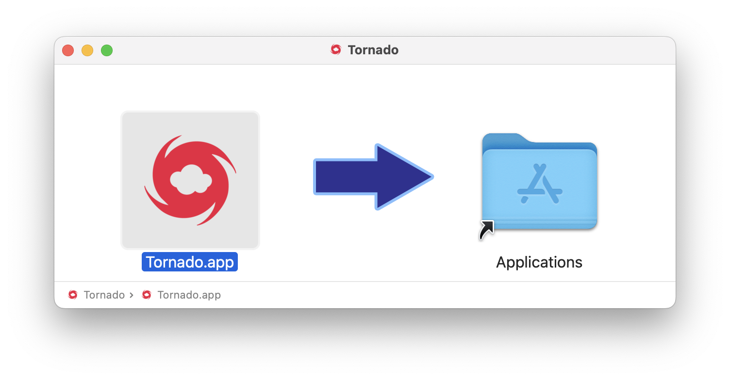 Tornado Installation Guide: Drag Tornado to the Applications folder